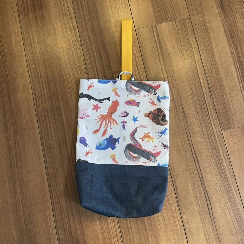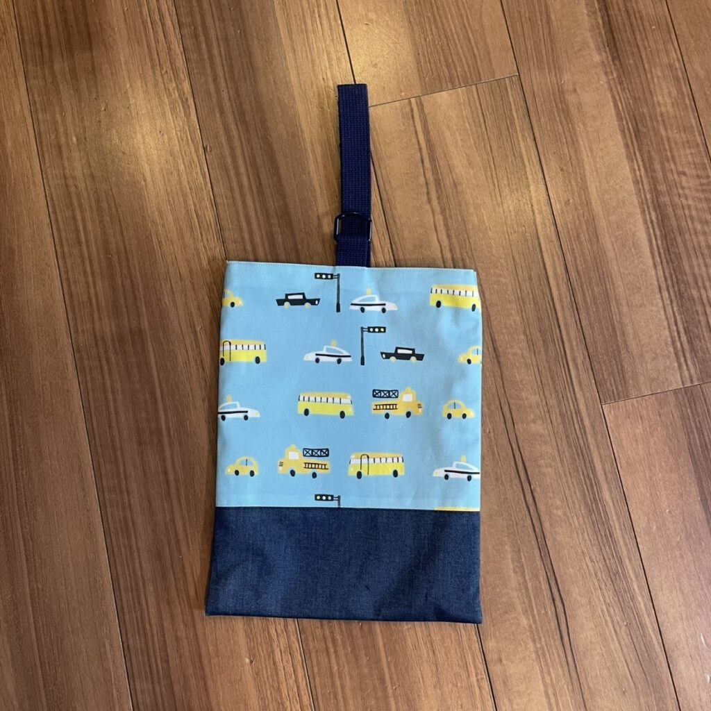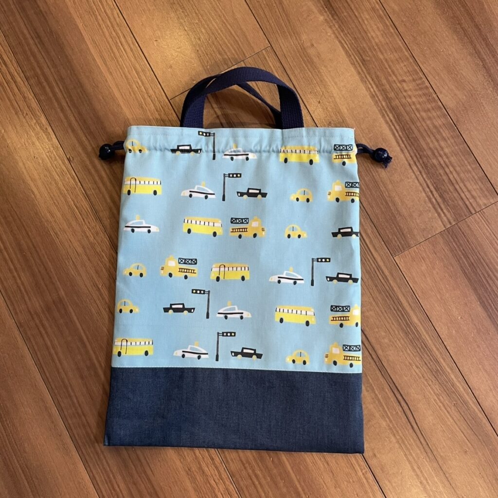 小学校から指定された上履き袋のほか、学童からも上履き袋を用意するよう指示があり、余った布で作って見ました!