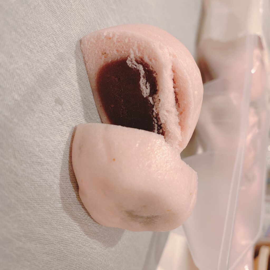 サイズも小さくてちょっとつまむのにちょうど良い大きさです。包装を開くと桜もちのような香りがフワッと広がります^^