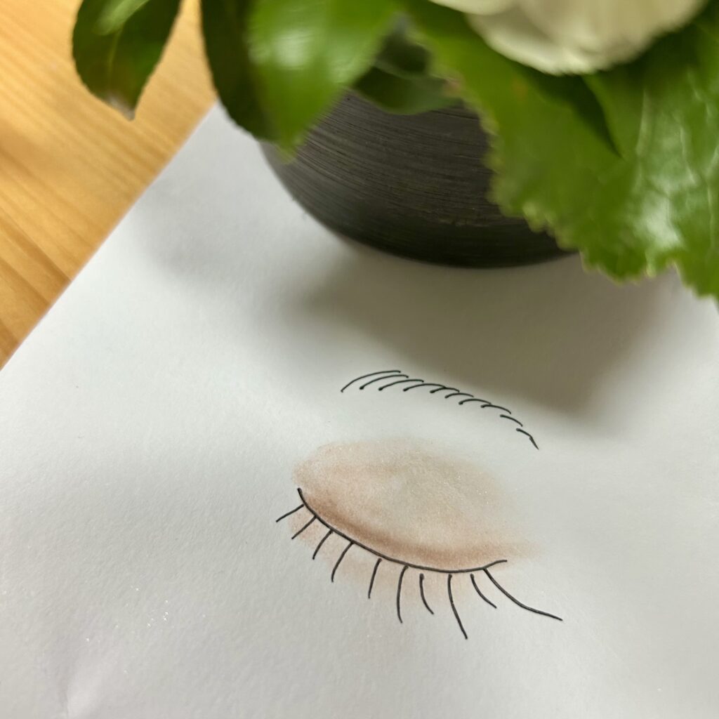 色は1月24日に発売された、05 Sunlit Reflet(サンリットルフレ)です。ピンクみがある06 Scented Hazeと迷ったのですが、美容部員さんに片目ずつタッチアップしていただいて、目元が明るく見えた05にしました。