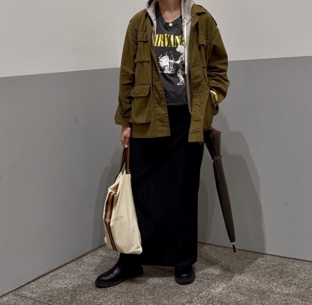 雨が降って寒くて泣きそうだった休日のコーデ。笑。パーカーをライナー代わりにインしました。