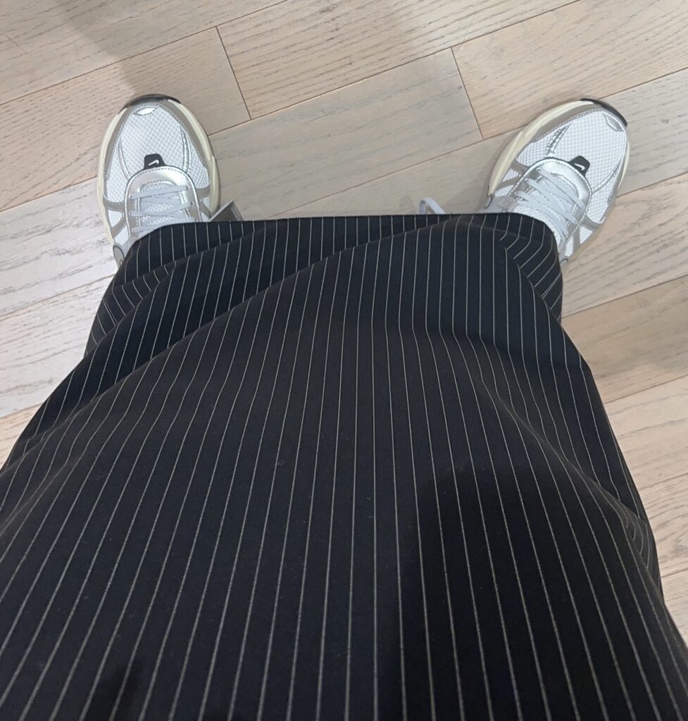 ピンストライプ柄でシャープな印象まさに「かっこいいスカート」手持ち服の鮮度が上がりずっとヘビロテしてます。