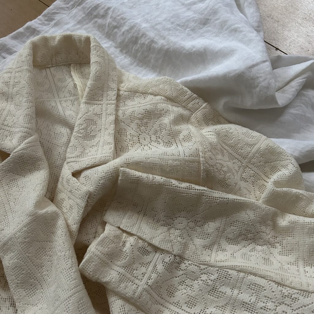 ずっと昔に買ったリネンの白スカートと去年セールで見つけたレースのジャケット。