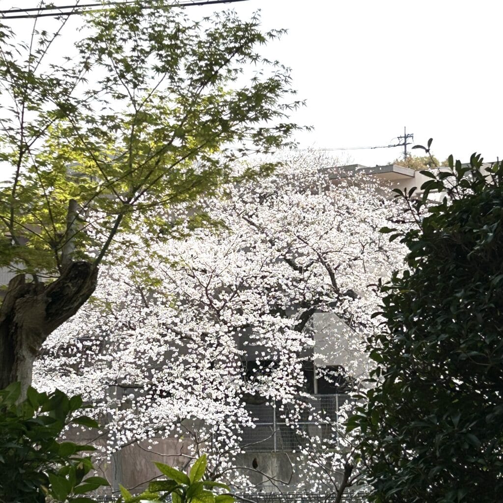 楽しかった先週を思い出しながら、窓の向こうを見たら桜が咲いていました。