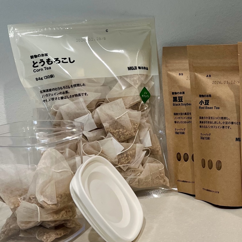 とうもろこし、黒豆、小豆、韃靼そばはノンカフェインでタイミングを選ばずよく飲むので、ストックの定番になっています。