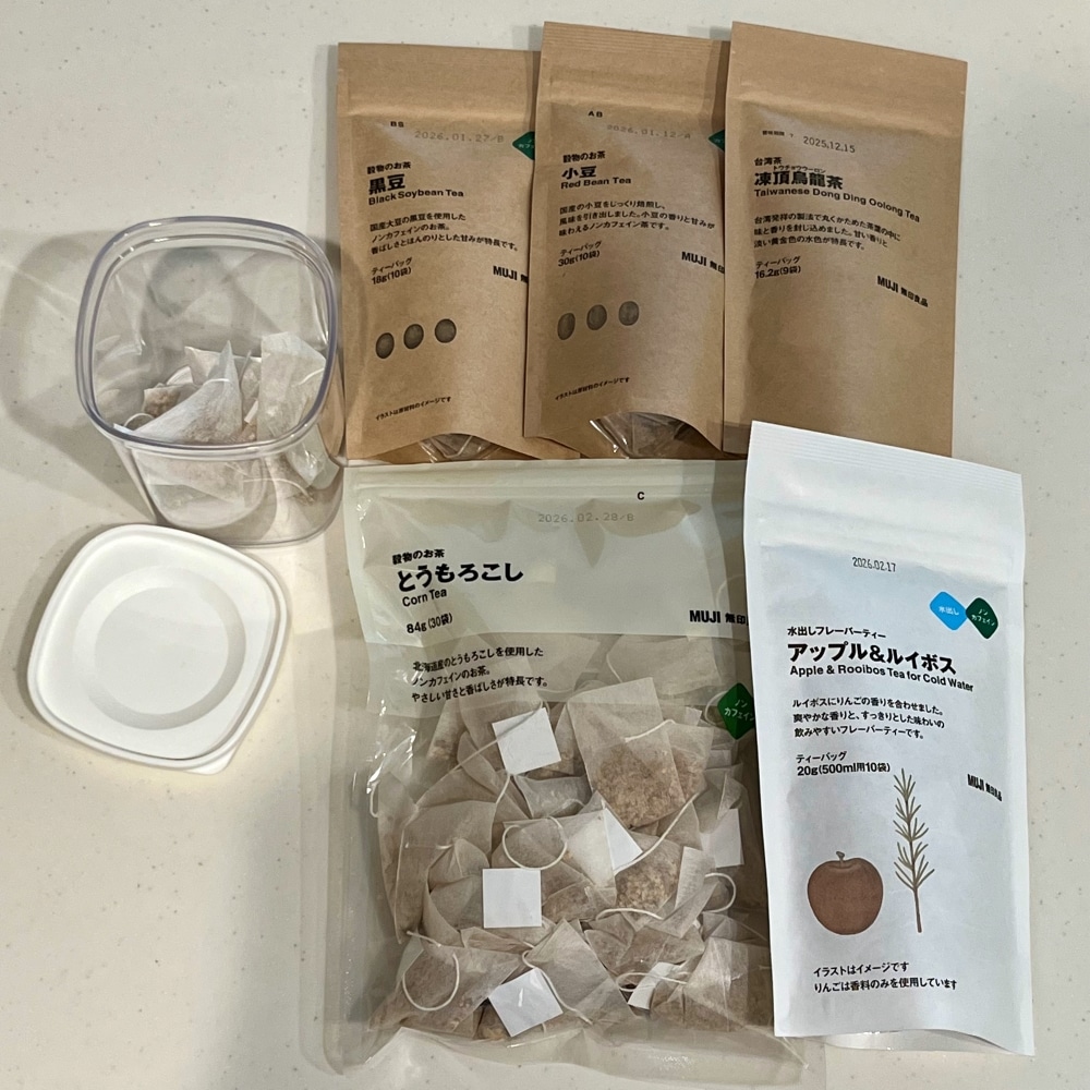 無印良品ではお茶のティーバッグの種類が豊富で、自分用にいつも数種類をストックしています。