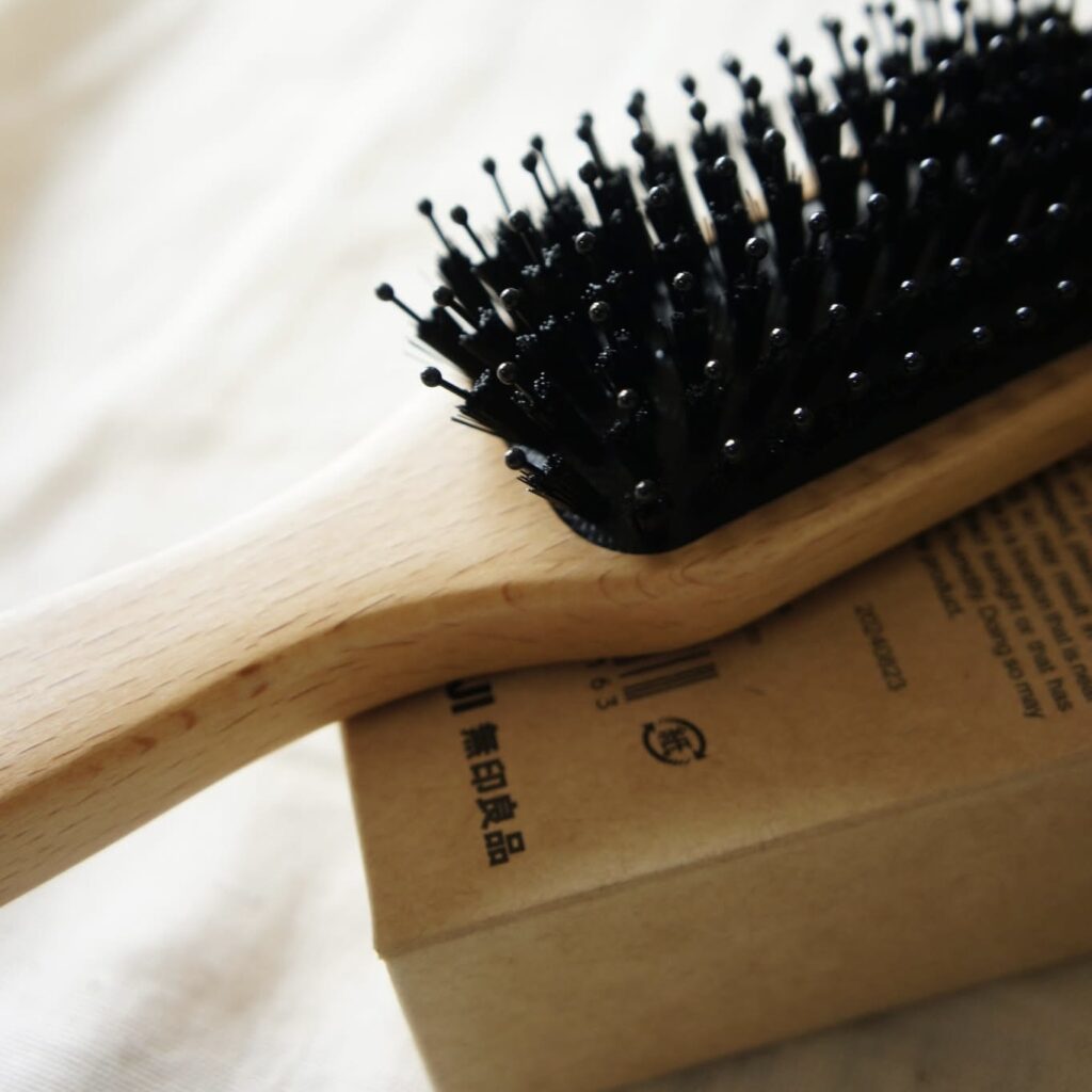 短い毛が中に入っているタイプ。頭皮のマッサージもしながら、乾燥で広がりがちな髪を抑えてくれる優秀アイテムだそうです。
