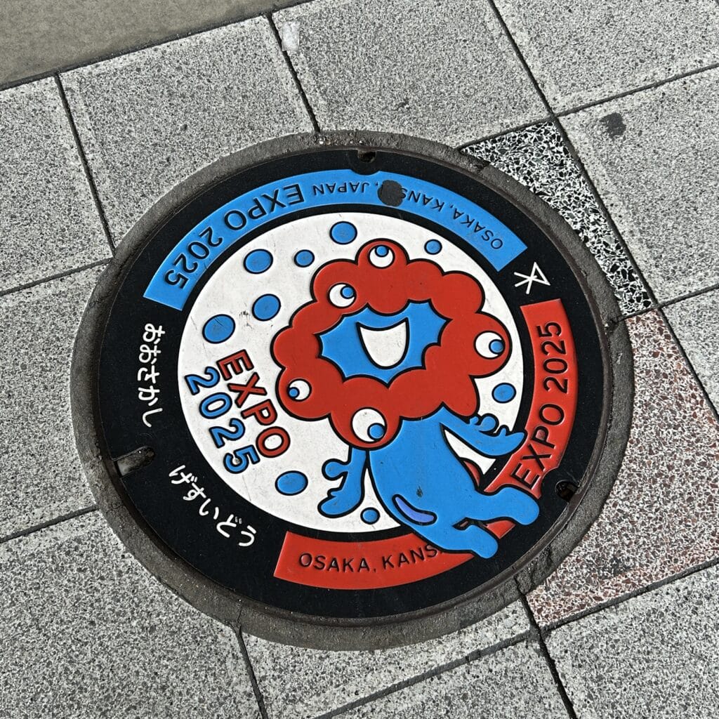 大阪・関西万博開催に向けて大阪府内の市区町村で設置拡大中。とはいえ、すべてのマンホールがミャクミャク使用になっているわけではないので、出会えたらちょっとテンションが上がりますよ。