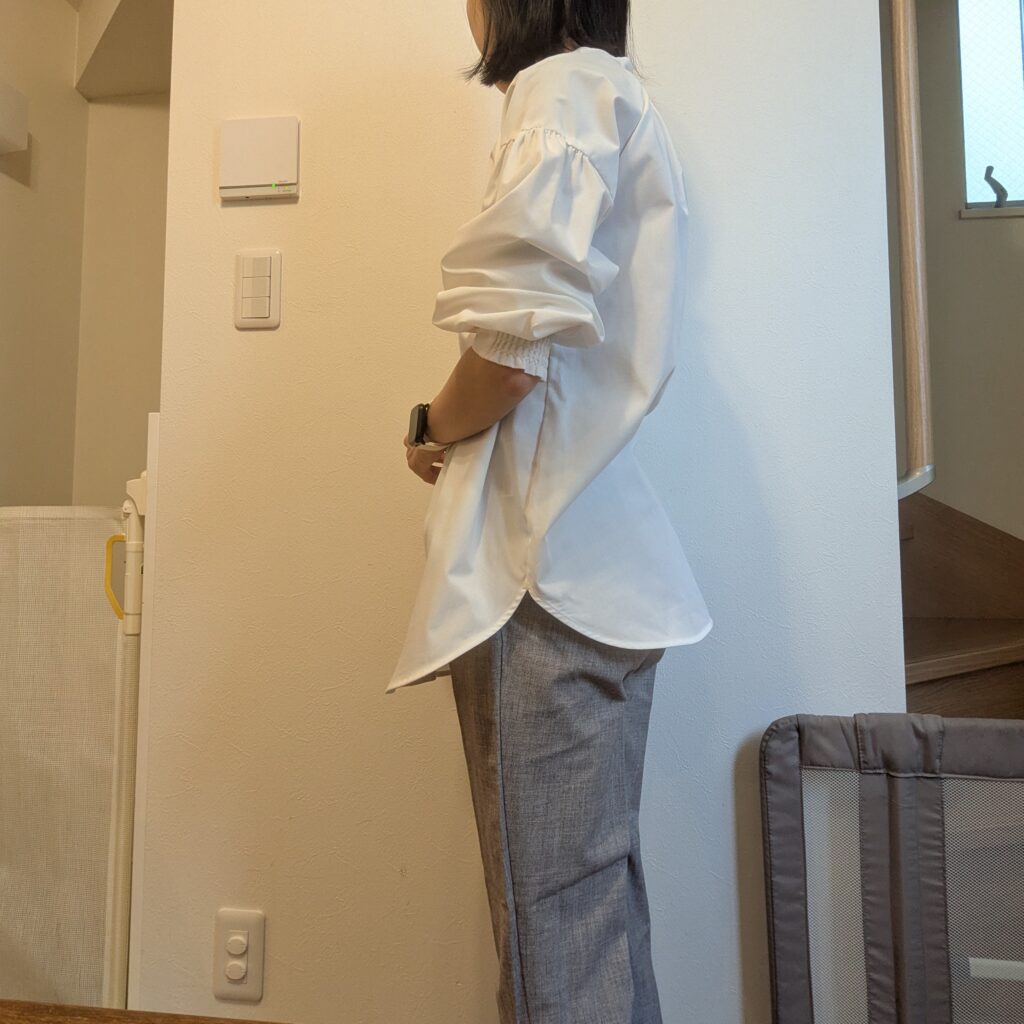 袖は半分ゴムが入っているのでオシャレな上に袖まくりがしやすい!