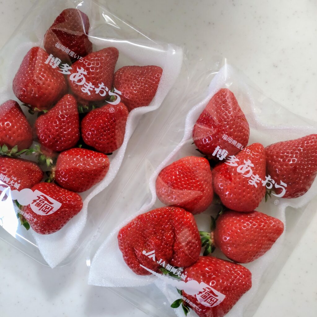 今回は福岡県産の博多あまおう。粒が大きくて、ショートケーキの主役として申し分なし!旬のものを届けてもらえるのもふるさと納税の良いところですよね。