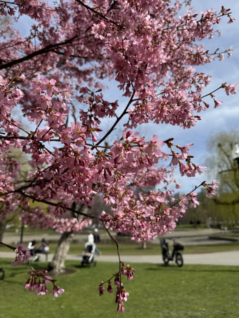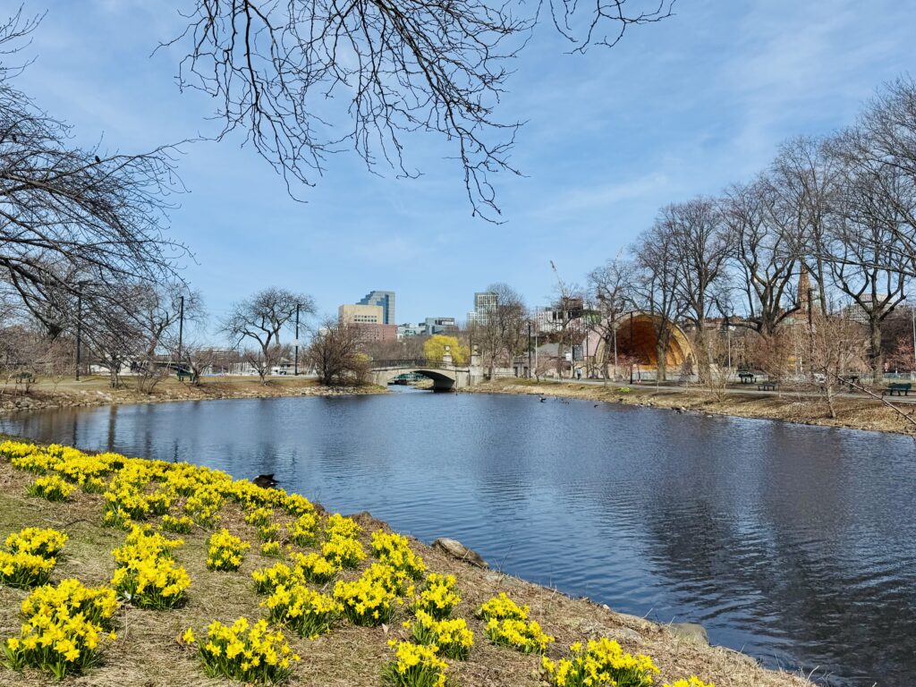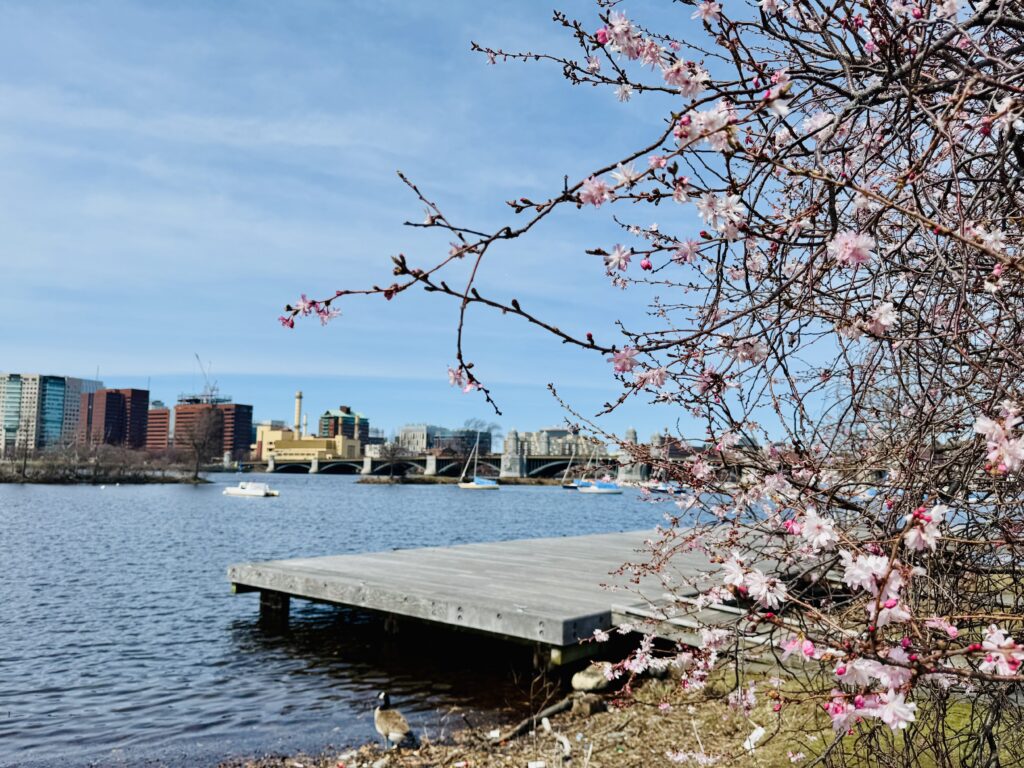 チャールズリバー沿いには大阪の桜の通り抜けの近くにある川沿いの桜のように、桜並木が植えられています。もちろん日本から寄贈された桜🌸