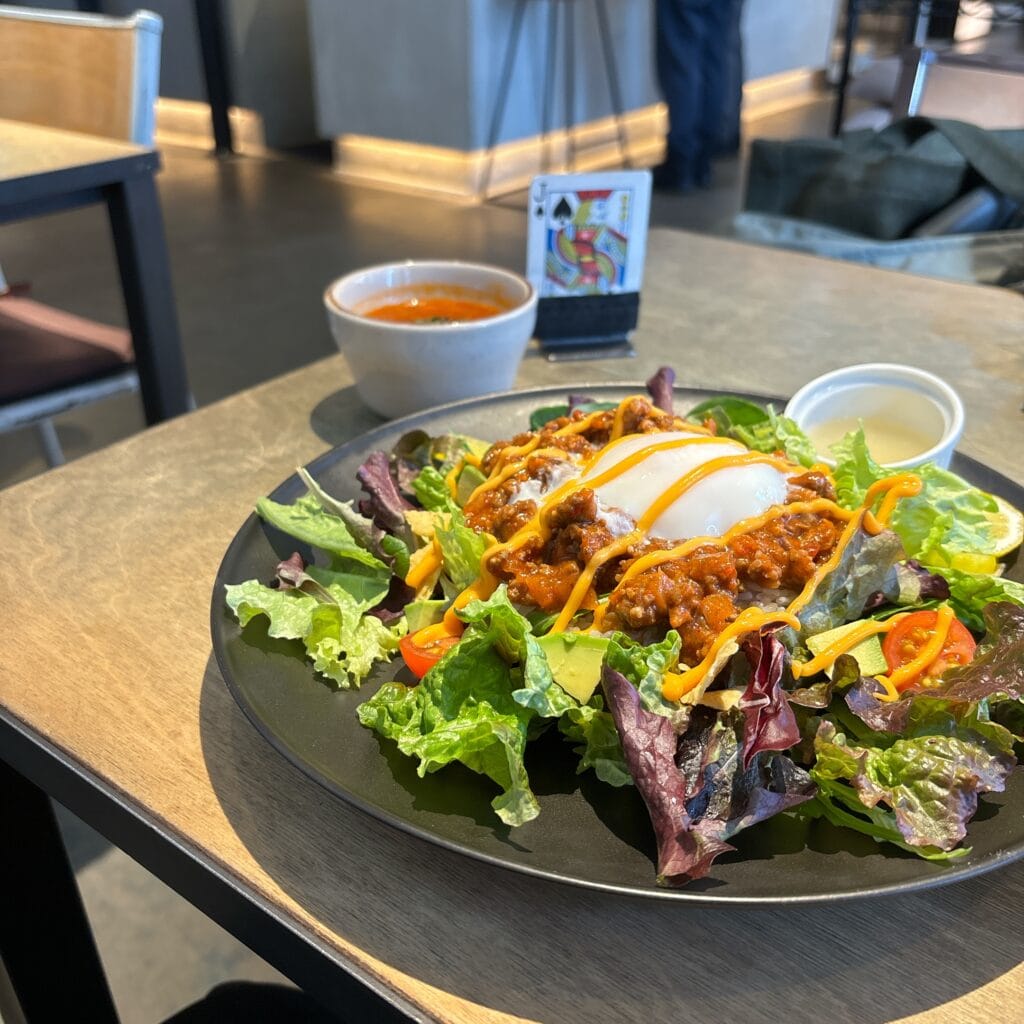 そんな中私が食べたのはタコライス😂本当はパスタが大好きなんだけど、ほら、ダイエッターなのでヘルシーな方を選択。