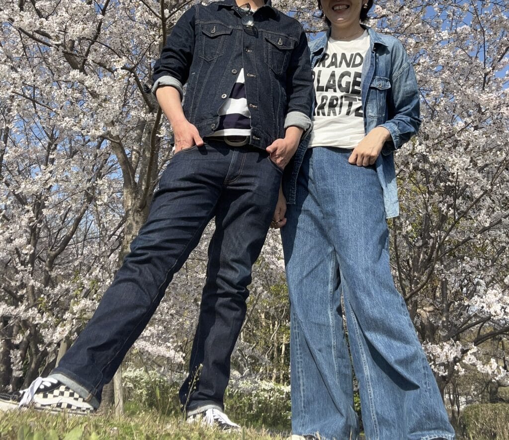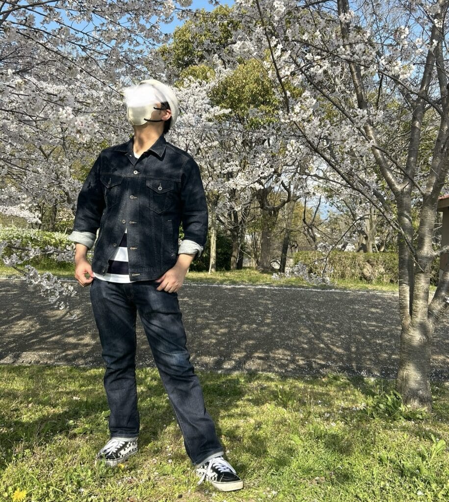 夫もデニムオンデニムコーデでした。日中暑くなりジャケットを脱いだら、、、