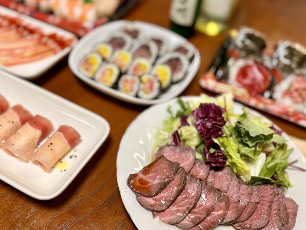 ほとんど買って盛り付けしただけのお手軽メニューのリクエストだったので、私ものんびりお酒を飲めました♩