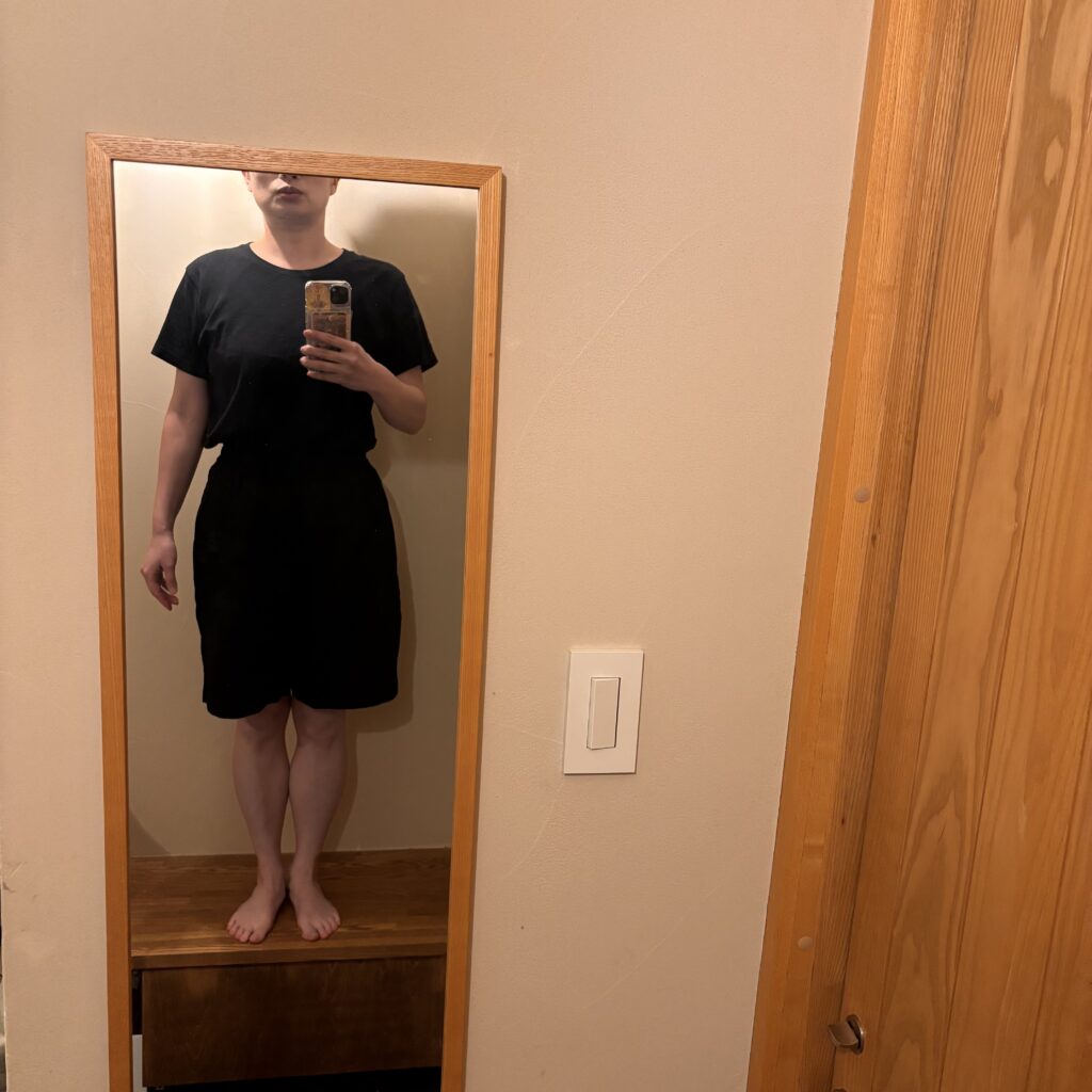 はい、この画像に注目~。左側の私が履いているパンツ。以前クリップでご紹介したUNIQLO:Cのものなんだけど、久しぶりに履いたらこの日ゆるくて落ちてくるようになってた🤣このパンツベルトループが付いていないのね。裾を踏むー!!嬉しいやら悲しいやら😭