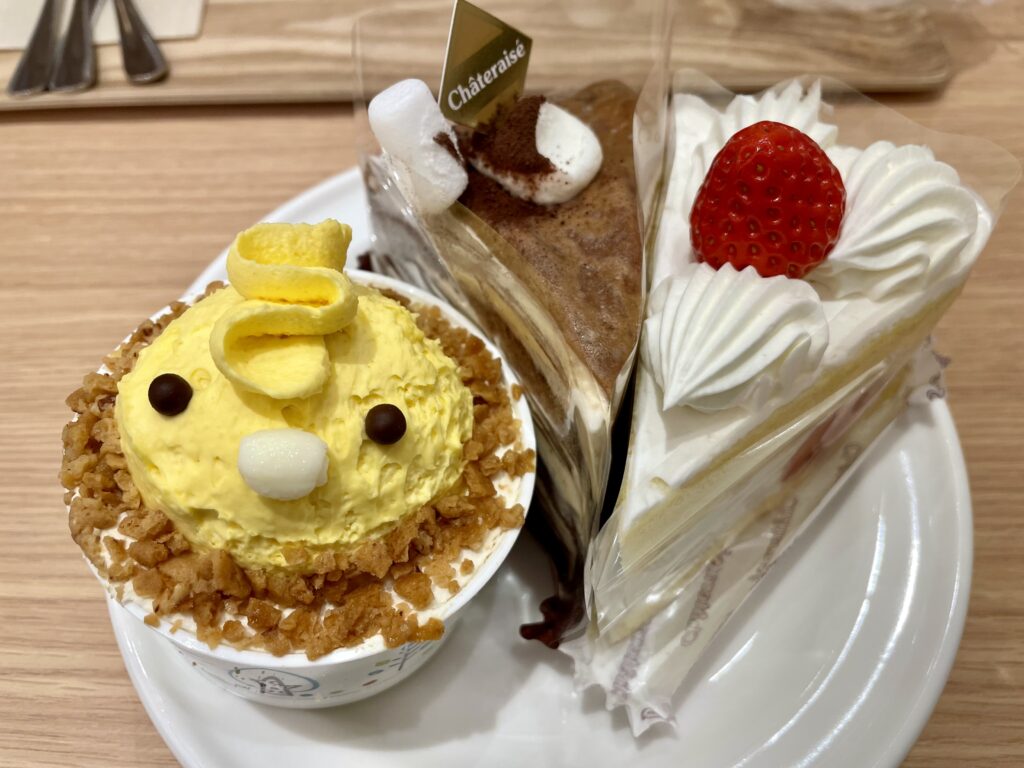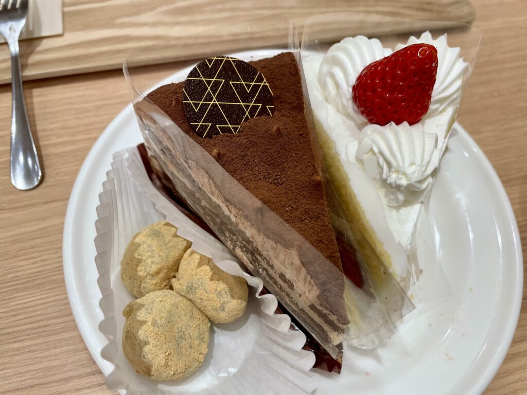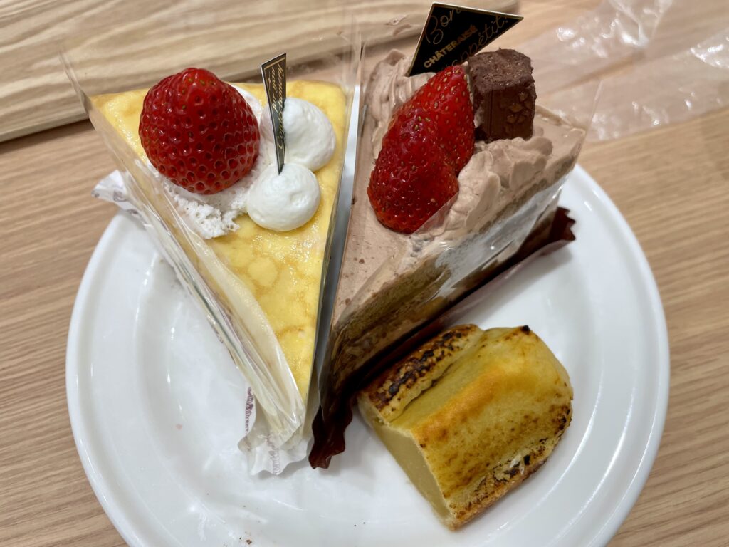 ケーキもまだあと2種類ほどあったし、和菓子やアイス、焼き菓子、袋入りのロールケーキやどらやきなどなど、ショーケースには美味しそうなスイーツがまだまだたくさん並んでいたのに、泣く泣く退店しました。