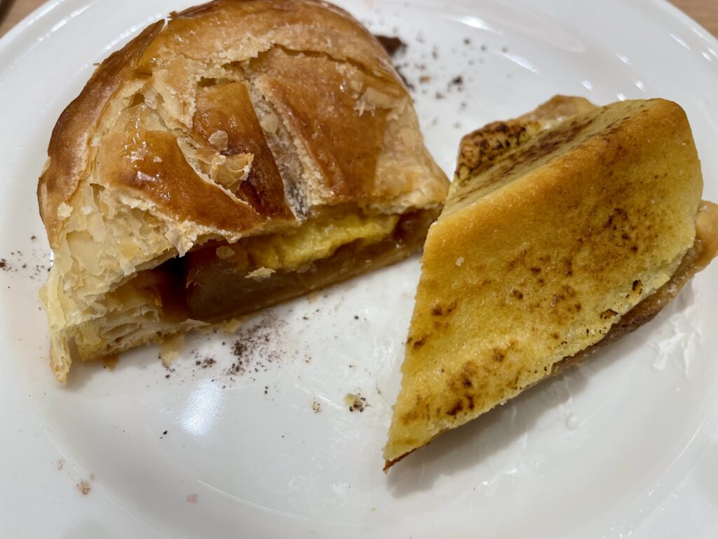 もう満腹ではあるのですが、パイなら軽いかな?という謎ポジティブ思考でアップルパイとリピのスイートポテトパイを。