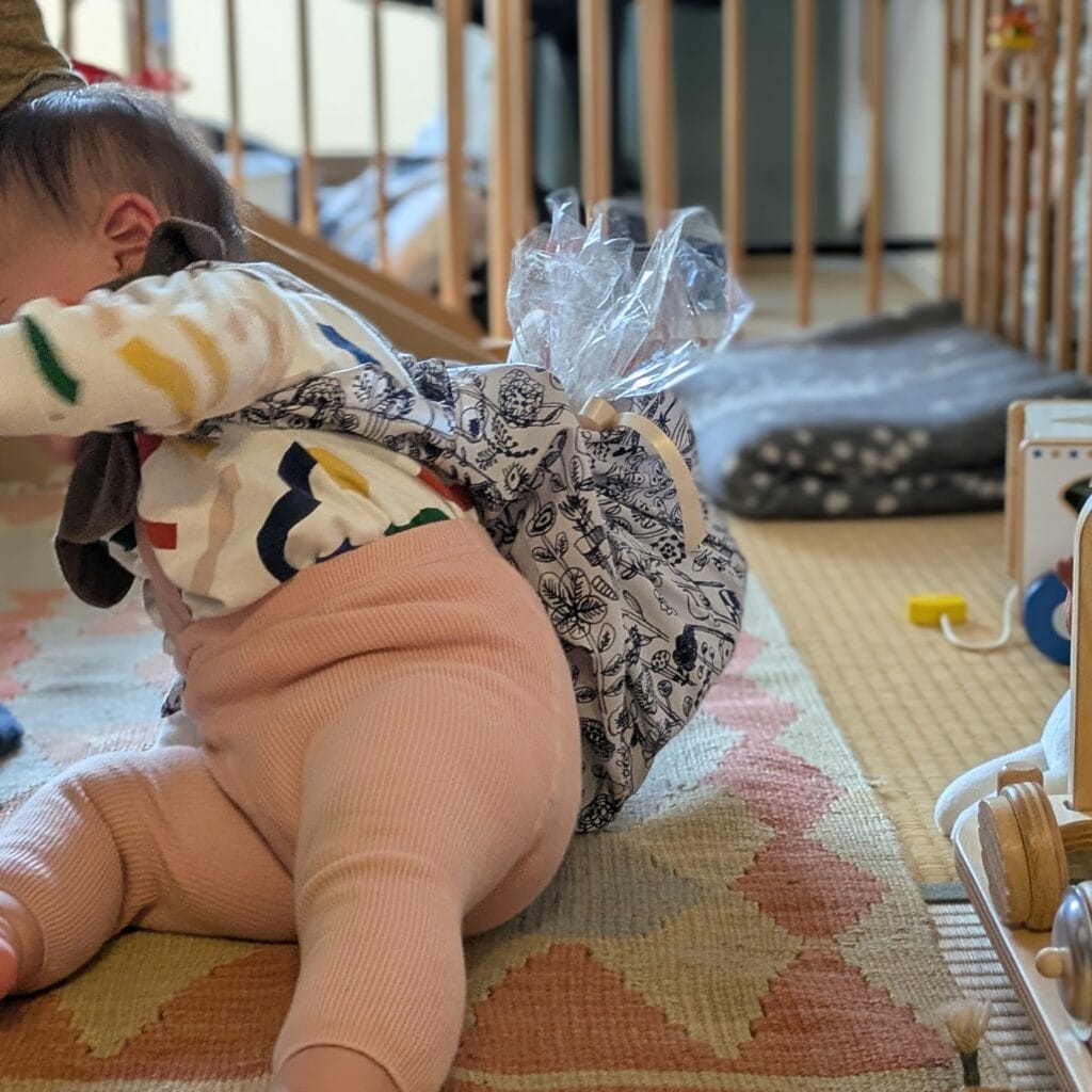 背負い方を考えていなかったのですが「風呂敷でもできるよー!」と教えてもらい、そのようにしました◎