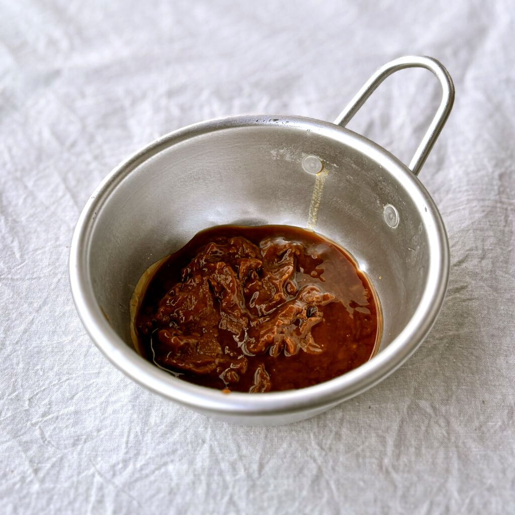 醗酵が進み、お味噌のようになっていますが、掻き集めるとこんなに取れます。