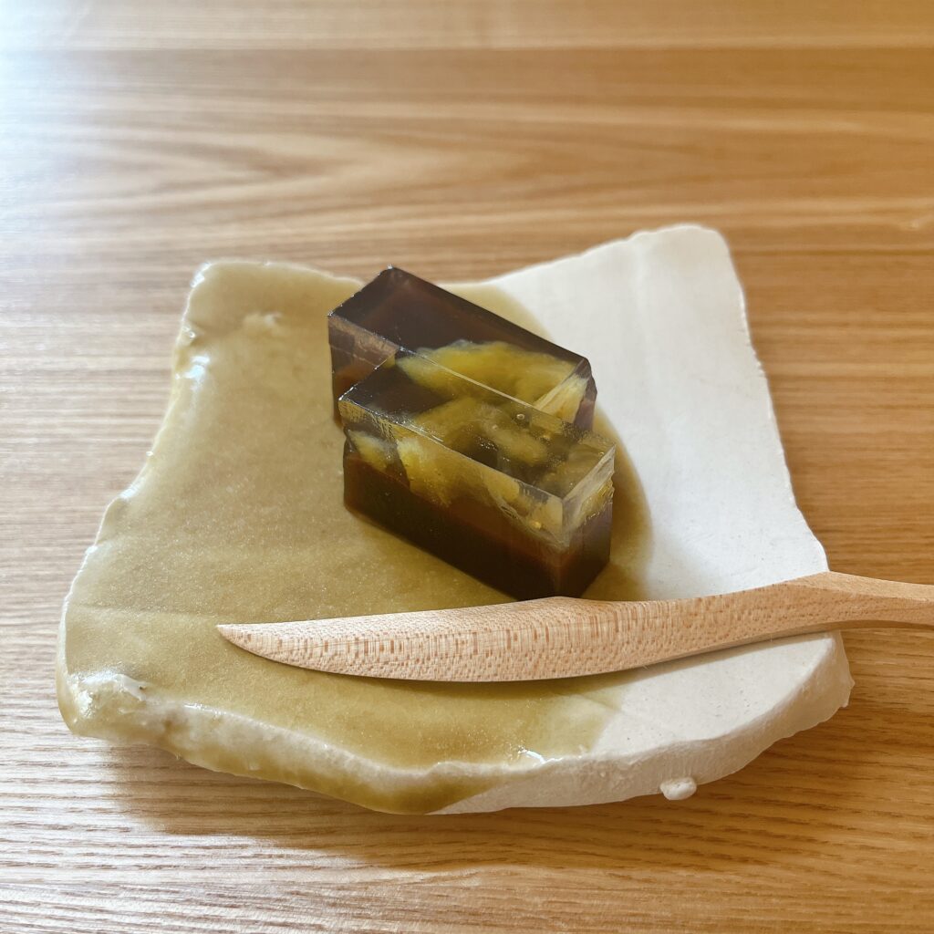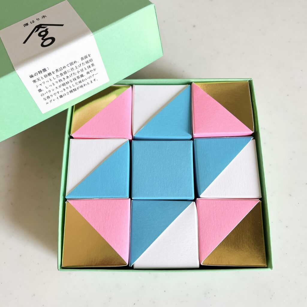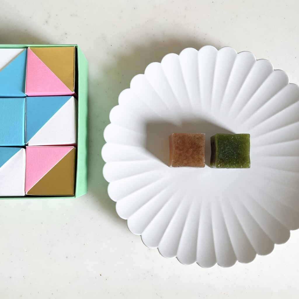 まわりがカリッとした食感で中は柔らかなゼリーのよう。1箱で2種類の味を楽しめるところも嬉しいなぁと思いました。ちなみに、こちらの味はアールグレイと抹茶です。近々新しい味も発売されるようです。気になる〜♡