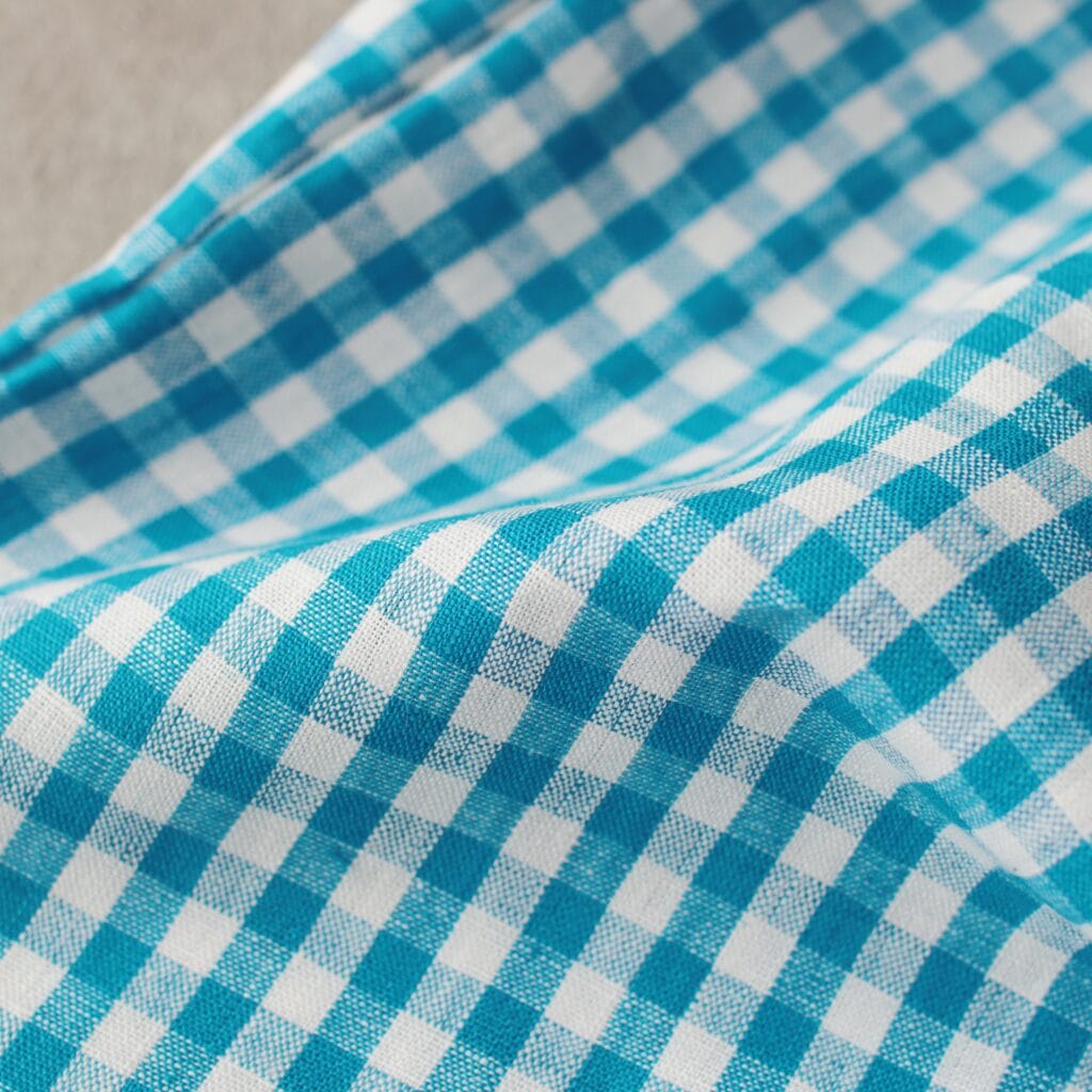春夏らしい爽やかな水色のチェックも相まって、軽やかな印象です。