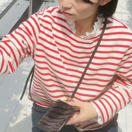 ボーダーの下に着て、襟元のフリルをチラ見せしてみました。