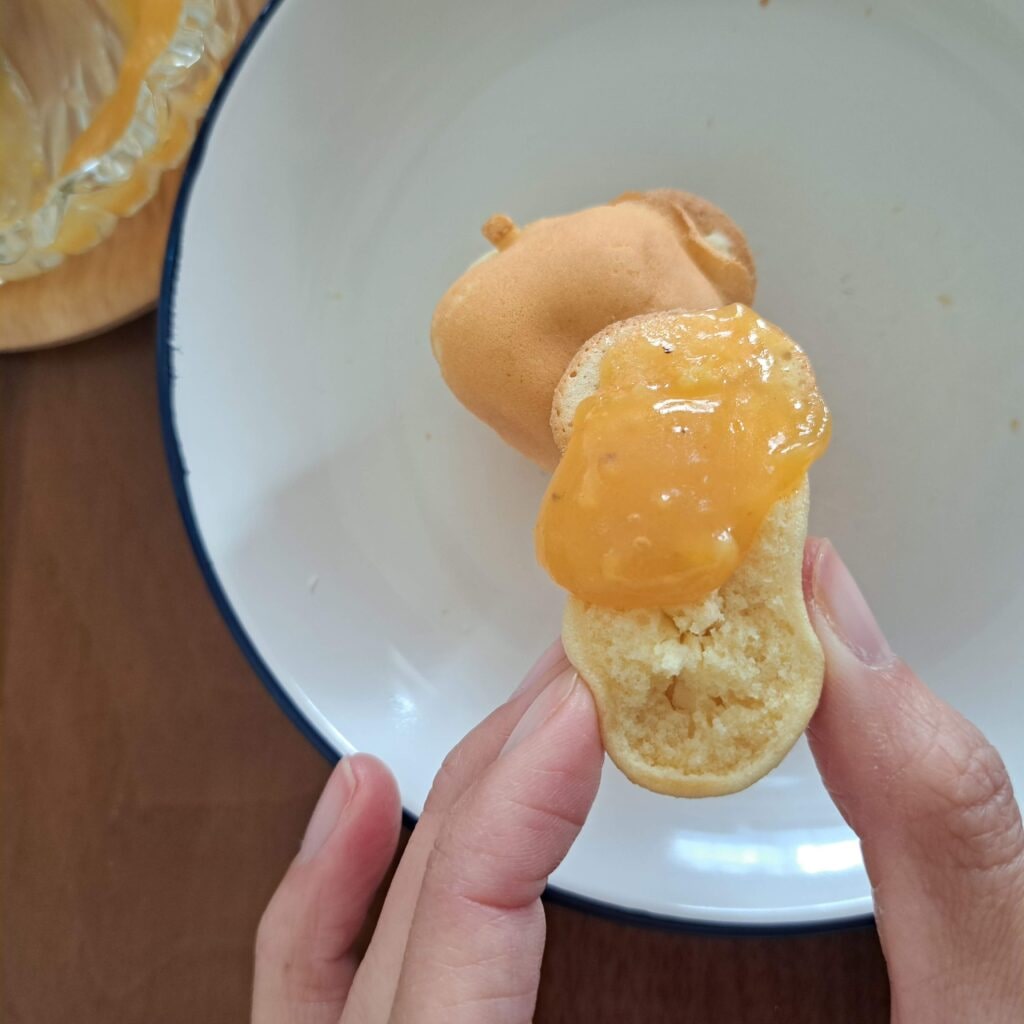 毎週決まった曜日に夫が買って帰ってきてくれるベビーカステラ。少し残っていたので、温めなおしてつけてみる。