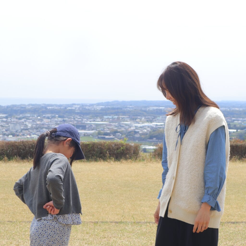 さて、この日はまだ少し肌寒く、風も冷たかったのでブラウスにシャギーニットベストを上から羽織りました。