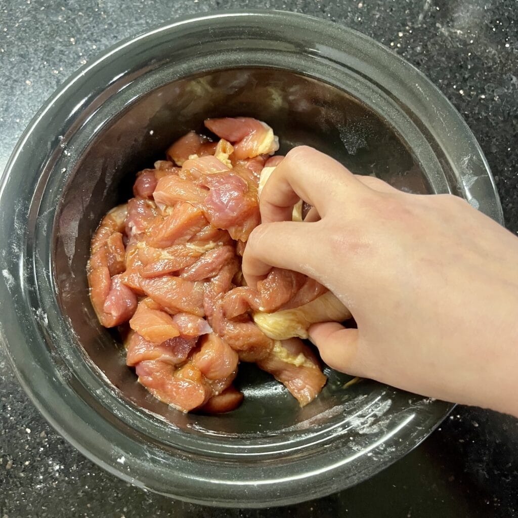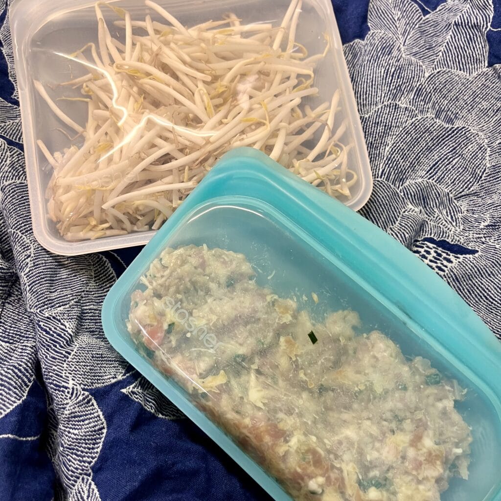 今回、参考にしたレシピは「春雨肉団子」。といいながらのっけから、我が家の冷蔵庫やストックにあるもので代用しました。レシピを見て「真似したい!」と思ったのは「肉餡に刻んだエノキを入れる」ところ。ヘルシーにカサ増しできます。