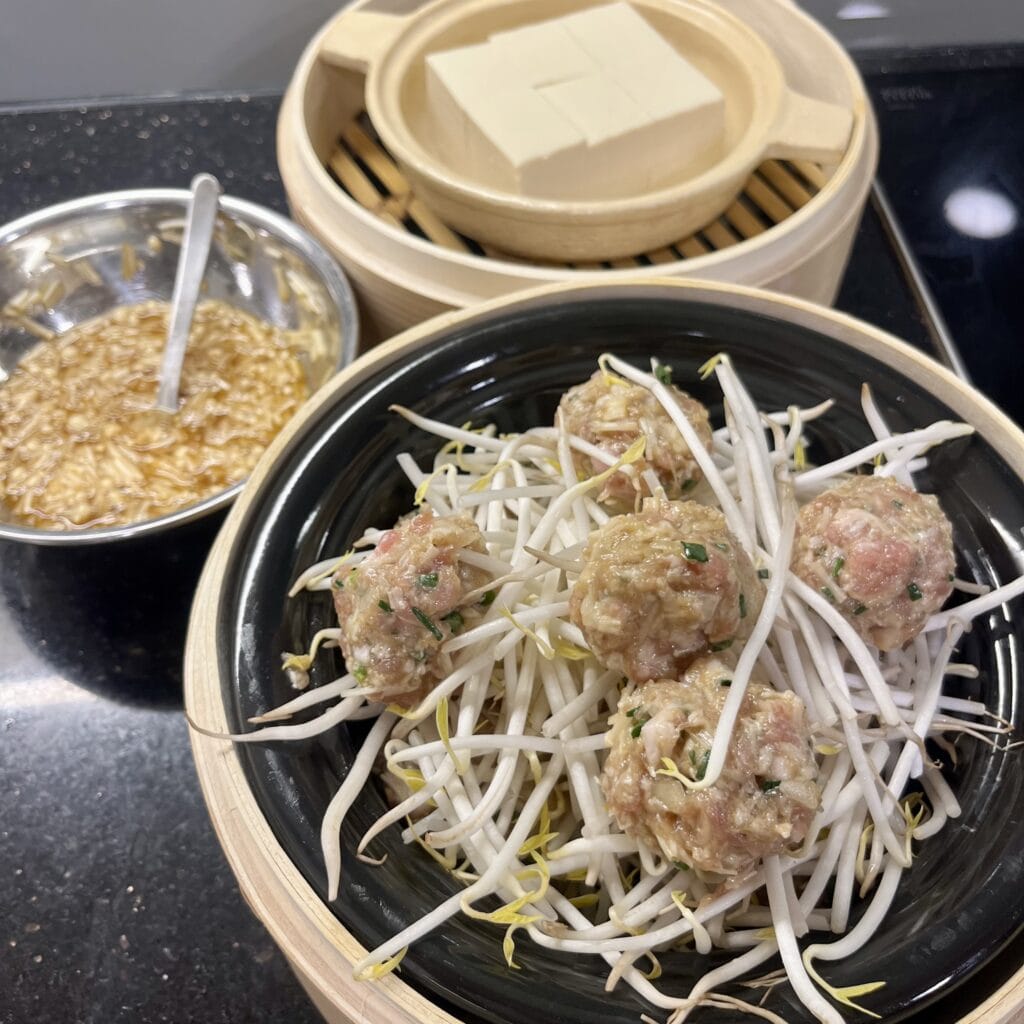 せいろを開けた瞬間、湯気がふわっと。簡単なのにご馳走をつくったみたい。蒸し立てのうちに食べました。はんぺん無しなのでふんわり感は少し控えめになったかもしれませんが、もやしの歯ごたえが予想外にアクセントになり、軽やかで食べやすい仕上がりに。
