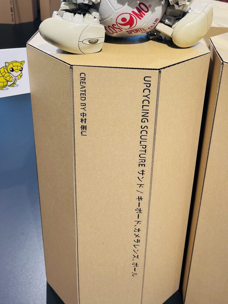 ポケモン達が乗っている台にはどんな廃材を使ってつくられたポケモンなのかが紹介されており、細部に渡って答え合わせのように制作を考える事ができます。