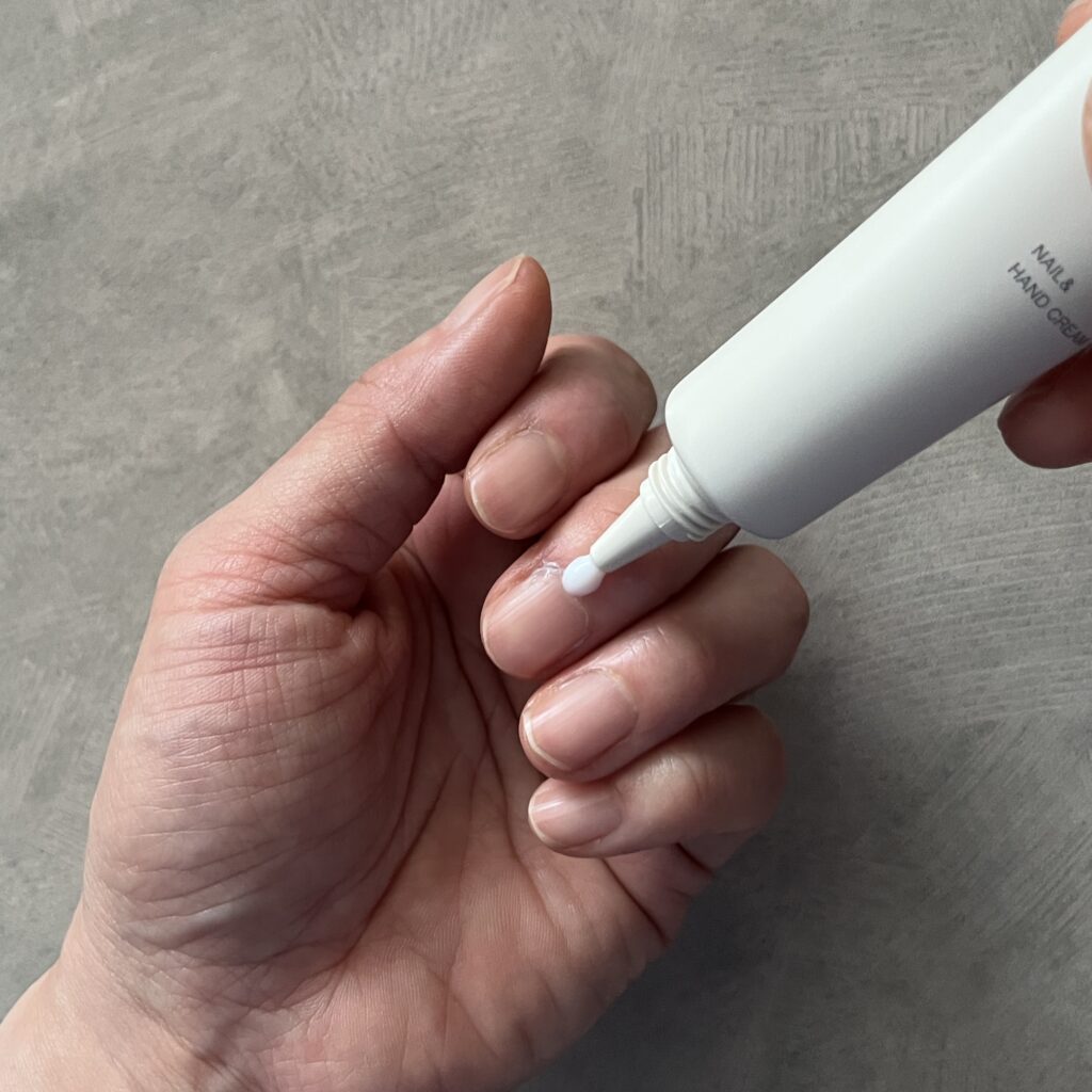チューブの先が細長いので、手先にも塗りやすく、手のひら全体にスルッと広がります。
