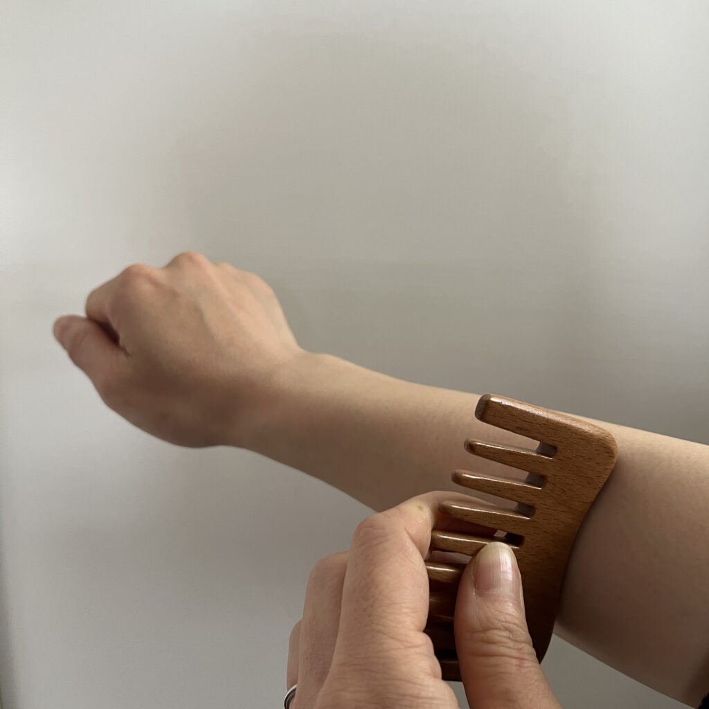 そんな時、このコームでこっそり腕や手をマッサージ。