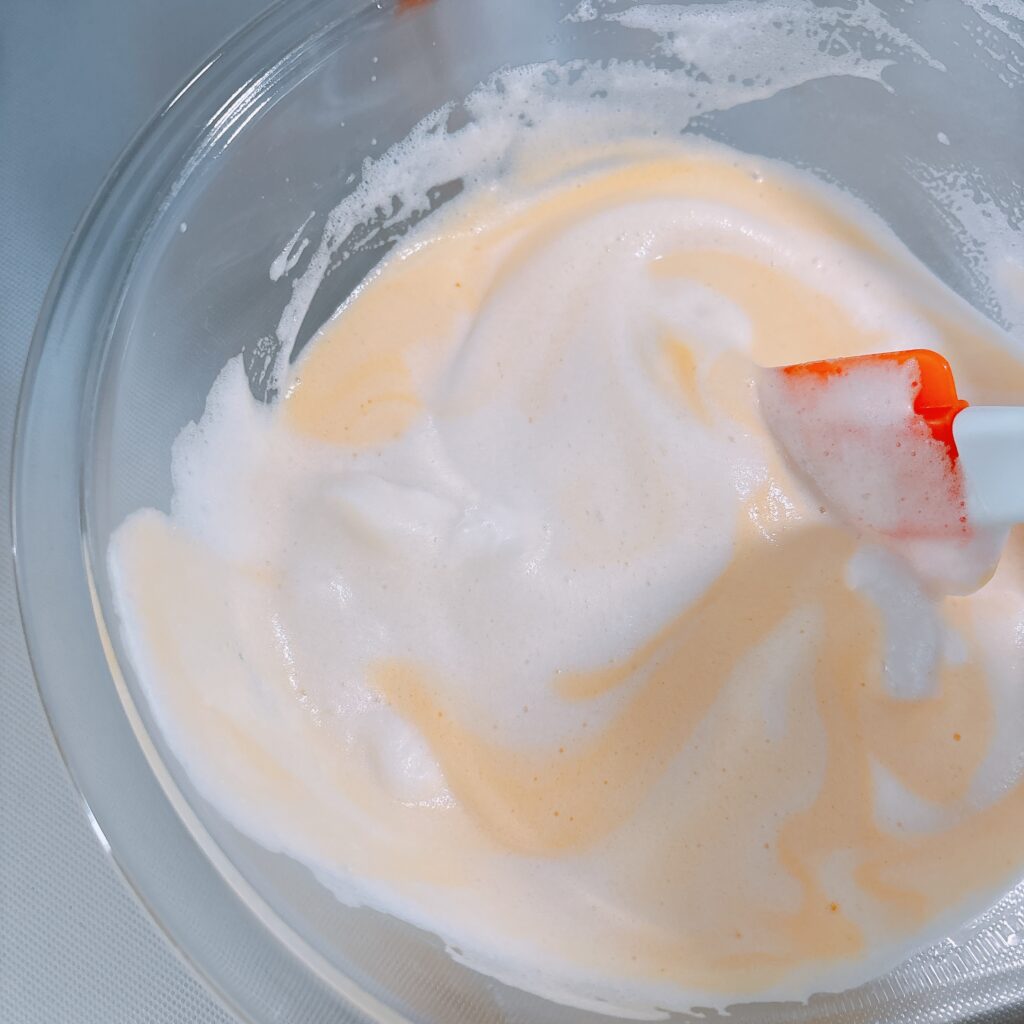 馴染んだらその後2.3回に分けてメレンゲを混ぜよう。