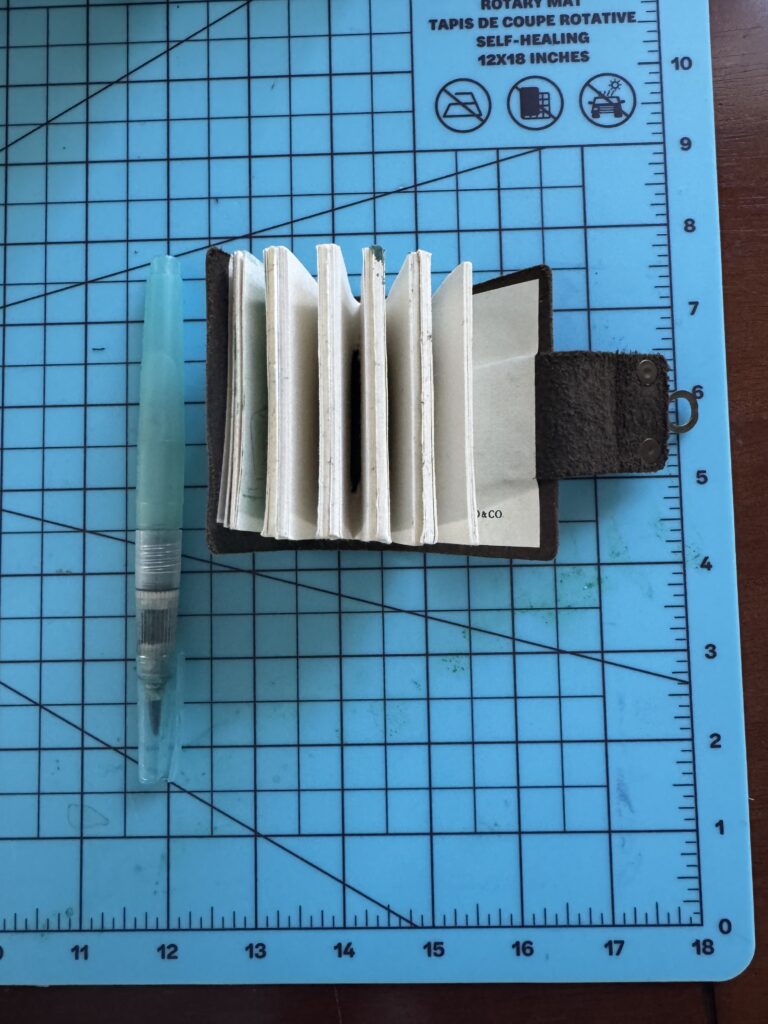 今まで愛用していたお出かけ用スケッチブックの中でも持ち歩きサイズの中で最小です。