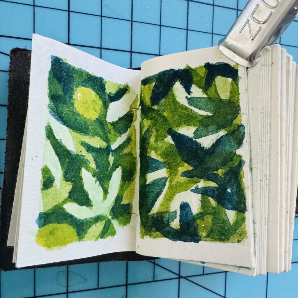 塗ったところが乾いたら、さらに濃い緑色を重ねていきます。