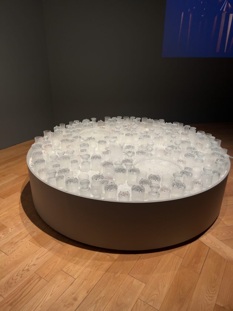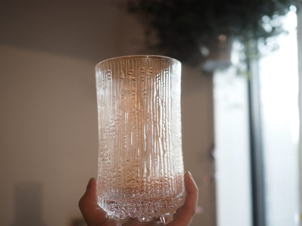 私が「タピオ・ヴィルカラ」と聞いてパッと思い浮かぶのは、こちらの「ウルティマ ツーレ」。ラップランドの溶けていく氷河を表したというザラザラの表面は本当に本当に美しく、初めて目にしたときは「一体どうやったらこんなに複雑な模様をつけられるのだろう……」と、その感動といったらなかったのですが……。が。展示によると、「イッタラの傷つきやすいガラス製品にとってはこの模様が傷隠しにもなった」なんて書かれていて、へえ~!と笑ってしまいました。