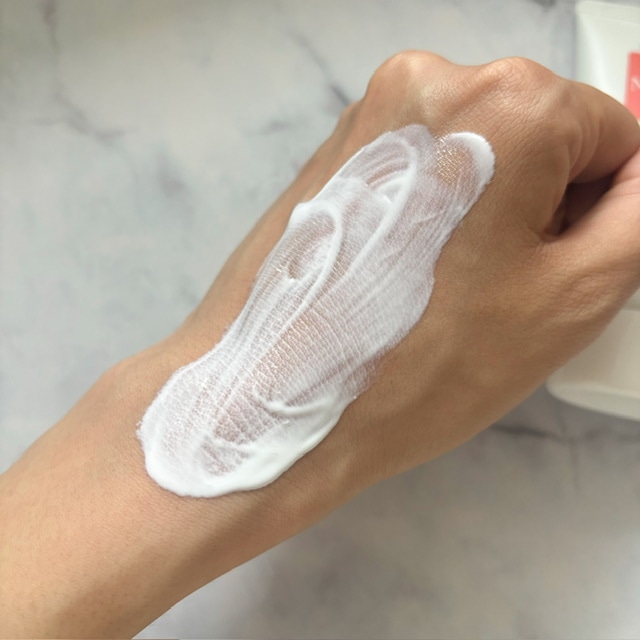 見た目は白いですが、塗り広げるとスルスルと伸びるので塗りやすい!
