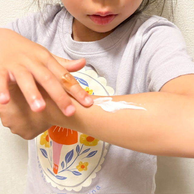 (子どもって日焼け止めやクリームを肌にのせた途端、走り去っていきません?)