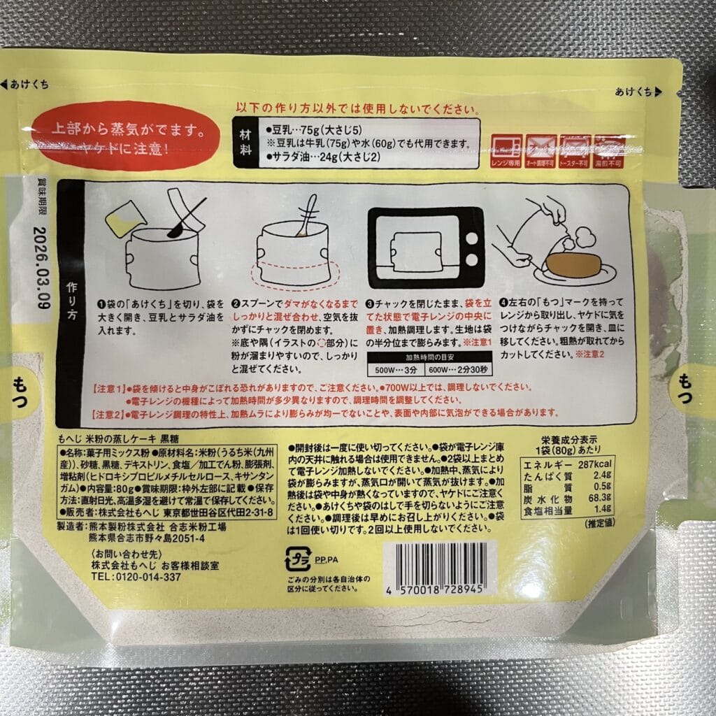 【カルディ】米粉の蒸しケーキ 黒糖 80g(321円)