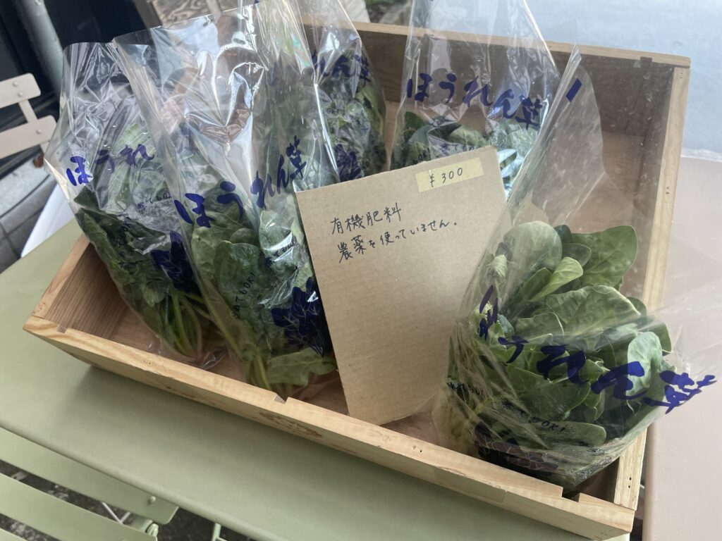この日訪れた時は、有機肥料や農薬を使わずに栽培されたほうれん草が軒先で販売されていました。