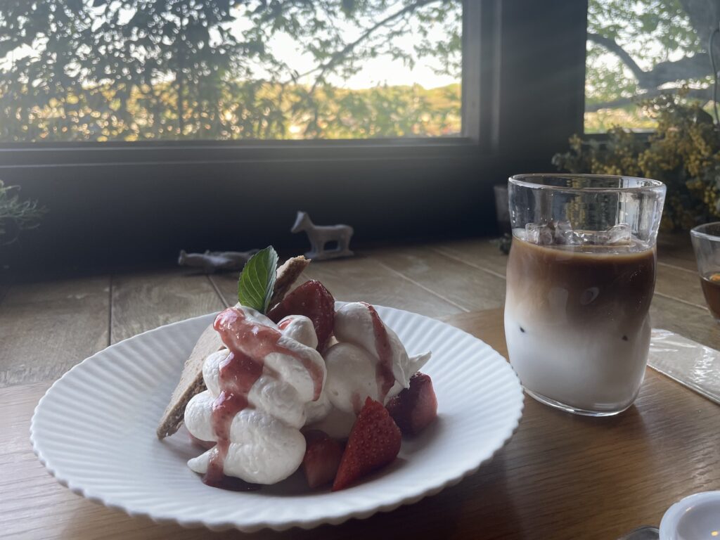 JIKE STUDIOのギャラリー併設のカフェではふるさと村で採れた季節の食材を使った創作ランチやスイーツが頂けます。最近頂いたスイーツ2日分を紹介させてください。
