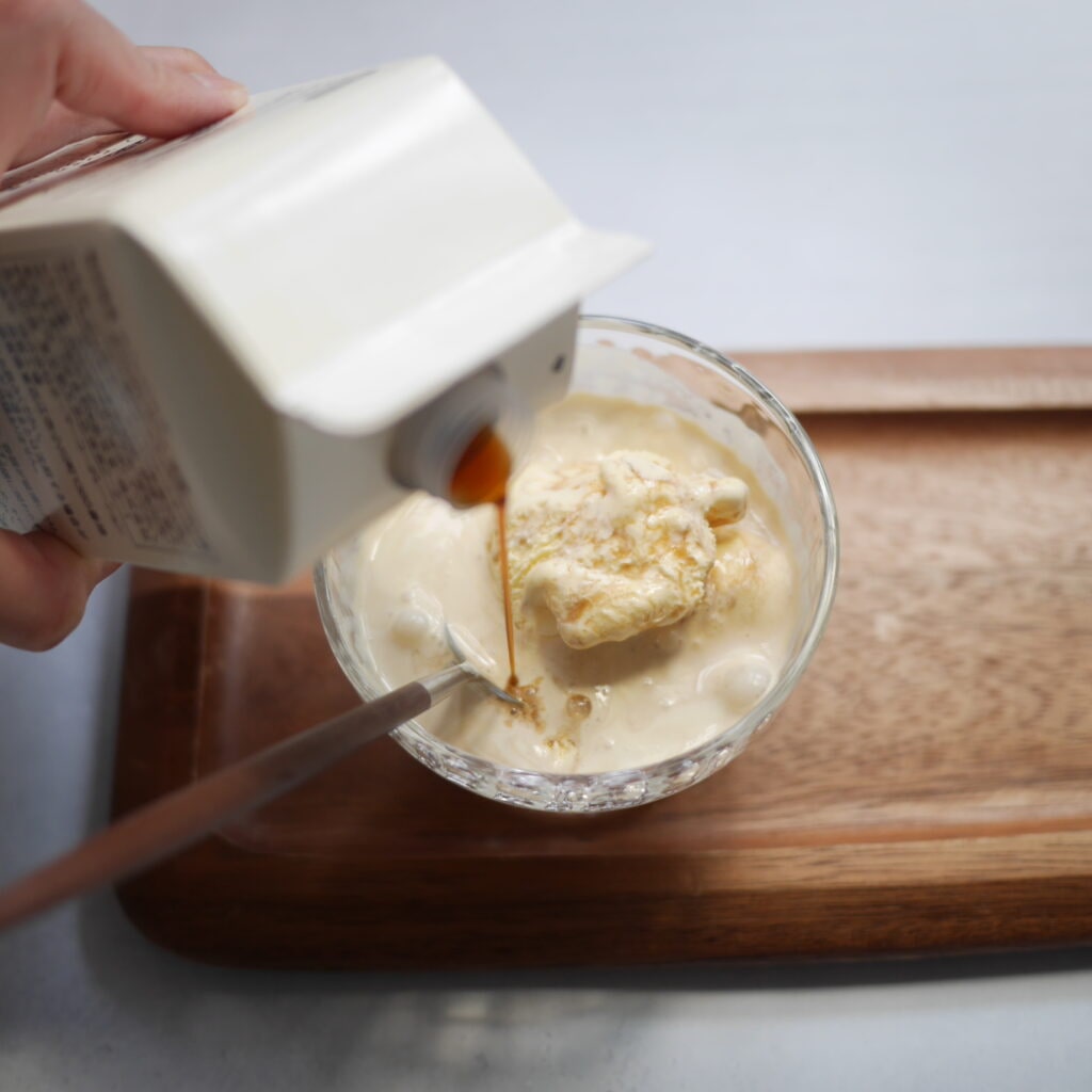 バニラアイスにカフェオレベースを注いでみます💛