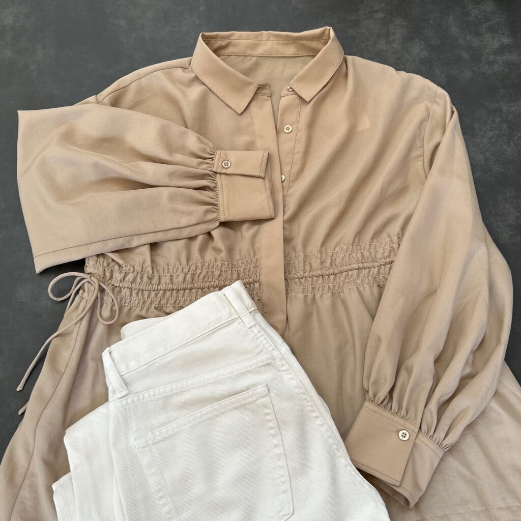 今年、大好きなLEPSIMで買った「ウエストシャーリング長袖ブラウス」。