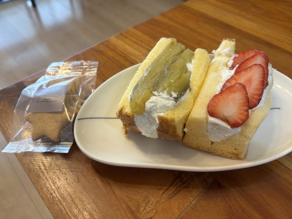 イチゴのサンドと焼き芋のシフォンサンド、それからかわいい星の形をしたレモンクッキーです。
