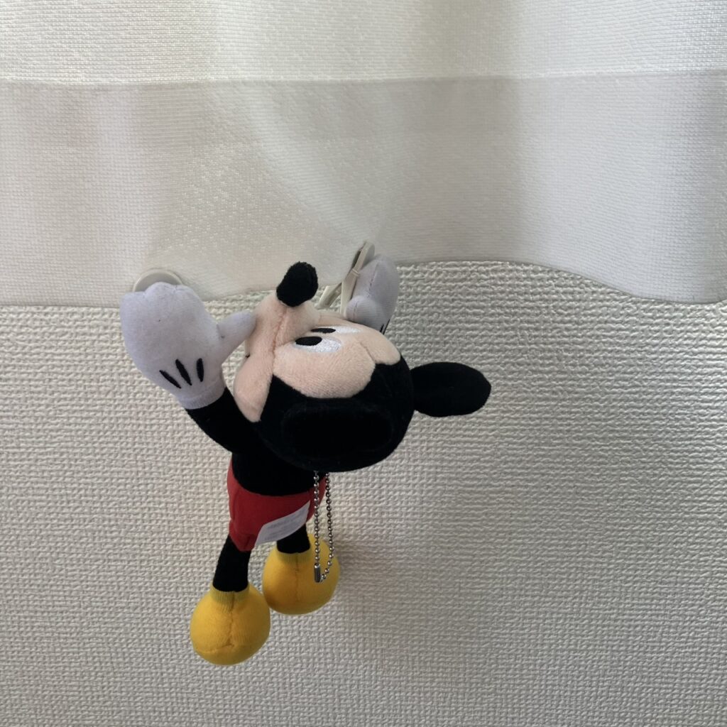 お土産のミッキーマウス。一生懸命ぶら下がってる感じがかわいい♡当日は息子のバンダナにずっとぶら下がっていました。