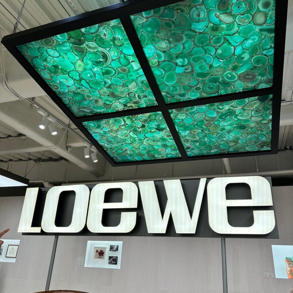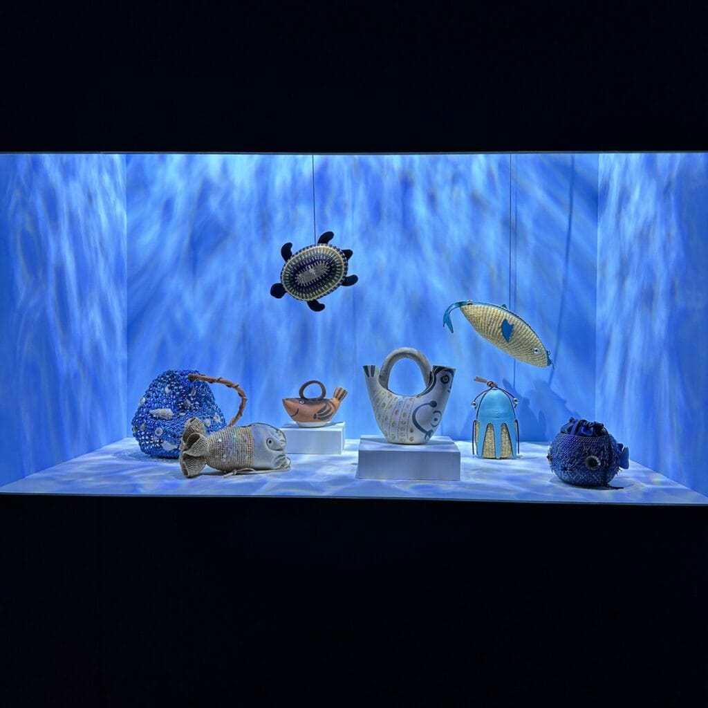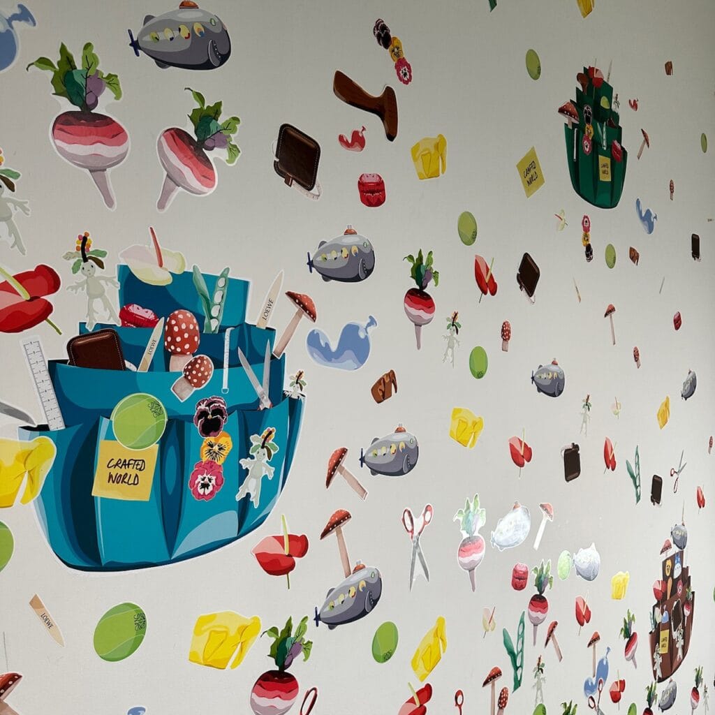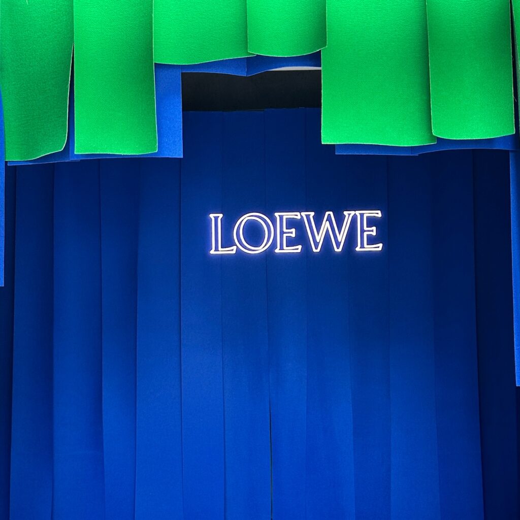 会場は原宿駅の目の前。全面ガラス張りの特徴的な建物は外装もロエベ一色に染まり入場前からワクワク!展示は2フロアをふんだんに使用し、テーマ毎に7つのお部屋で構成されていました。