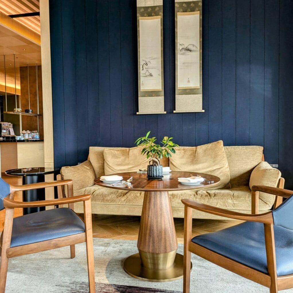 ラウンジでは、夫氏はウイスキーやシャンパンを楽しみ、下戸な私はモクテルやオリジナルのジンジャーエールを堪能。落ち着いた空間で、夫氏と共に贅沢なひとときを過ごしました。お互いに好きな飲み物やフードを楽しみながら、ゆっくりと流れる時間に身を任せる幸せなひとときでした。