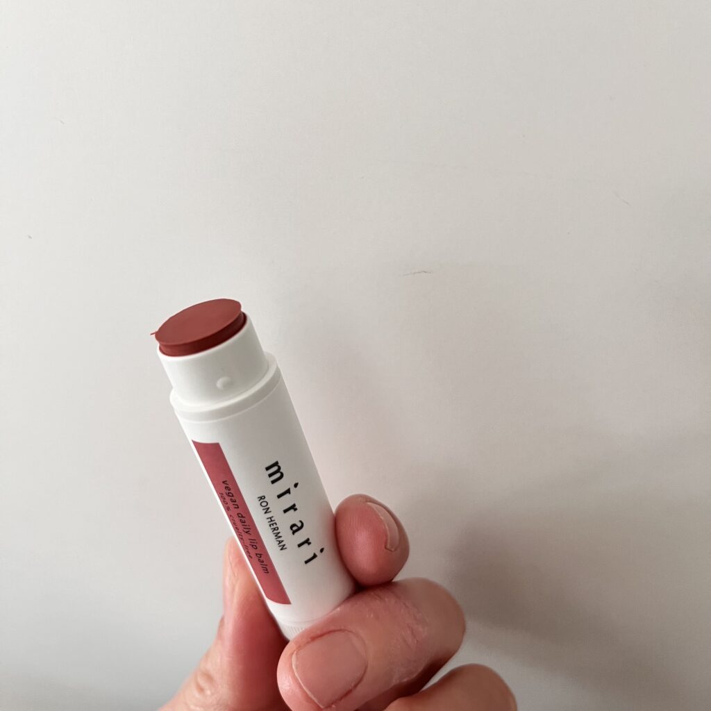 唇にのせると、見た目ほど濃くなく、ほんのりピンクに色づくので、