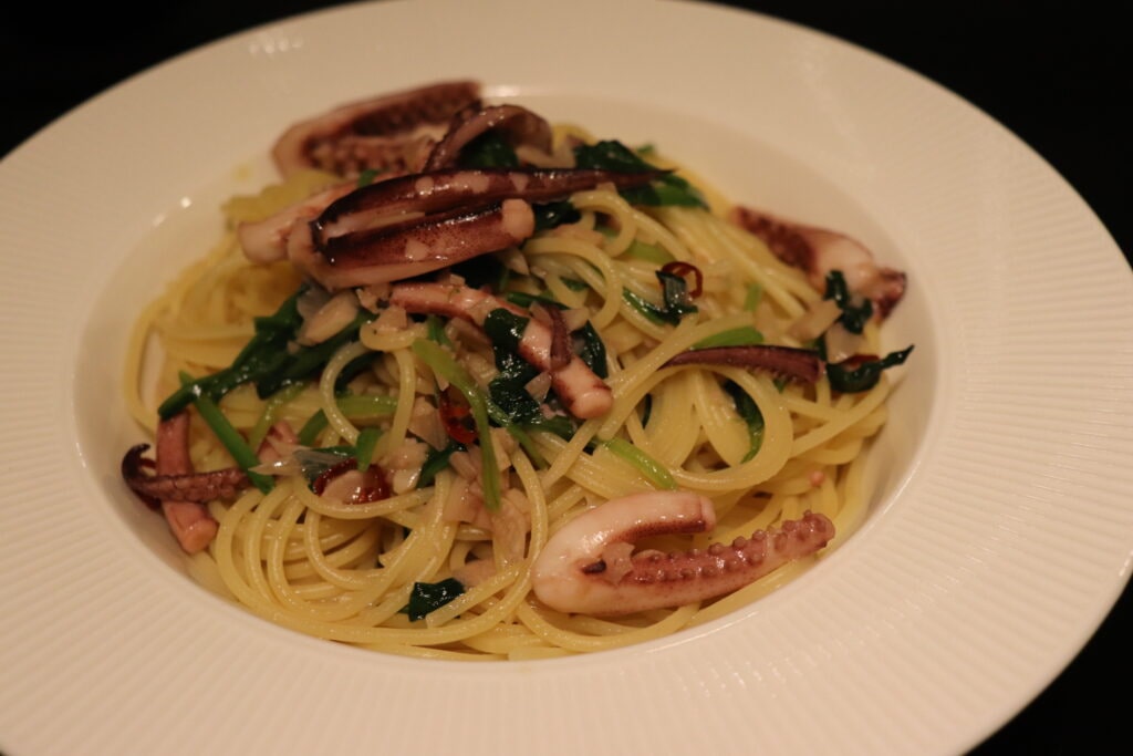 イカとほうれん草のペペロンチーノ