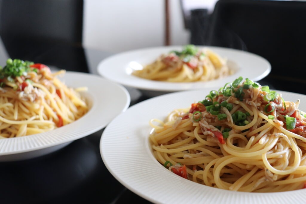 ミニトマトとしらすのパスタ